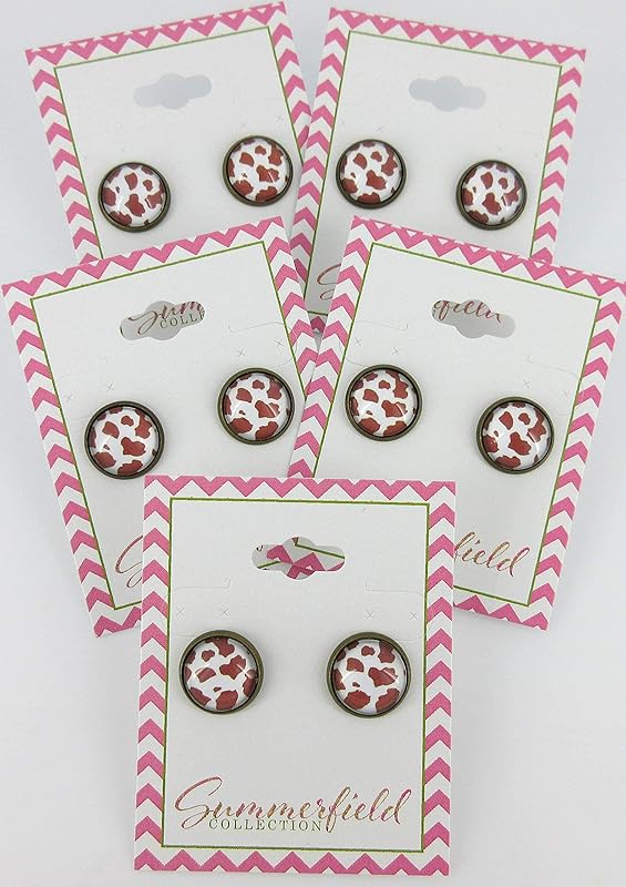 Summerfield Collection Antiqued Gold-tone Brown Cow Animal Print Glass Stud Earrings 12mm