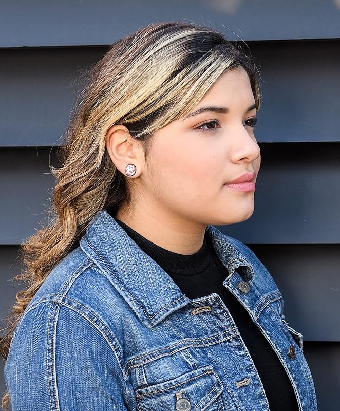 These earrings are so pretty! The glass cabochon diameter is appx. 1/2". Set in an antiqued gold-tone bezel setting. Post closure. In stock and ready to ship out. Comes in a gift box for easy gift-giving. They're so unique though, you might be tempted to keep them for yourself!