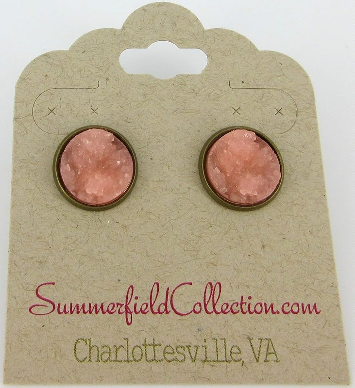 Summerfield Collection Antiqued Gold-tone Faux Druzy Stone Stud Earrings 12mm (Apricot)