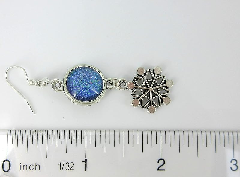 Summerfield Collection Antiqued Silver-tone Blue Purple Glitter Glass Dangle Earrings Snowflake Charm Hand-painted