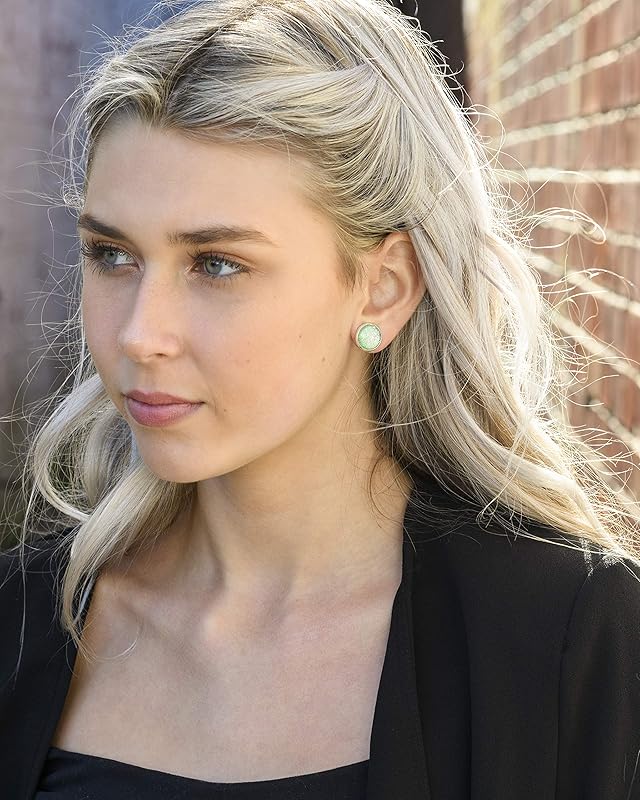 Summerfield Collection Silver-tone Duo Stud Earrings Hand-painted Mint Green Twinkle Glitter Glass Faux Druzy Stone 12mm