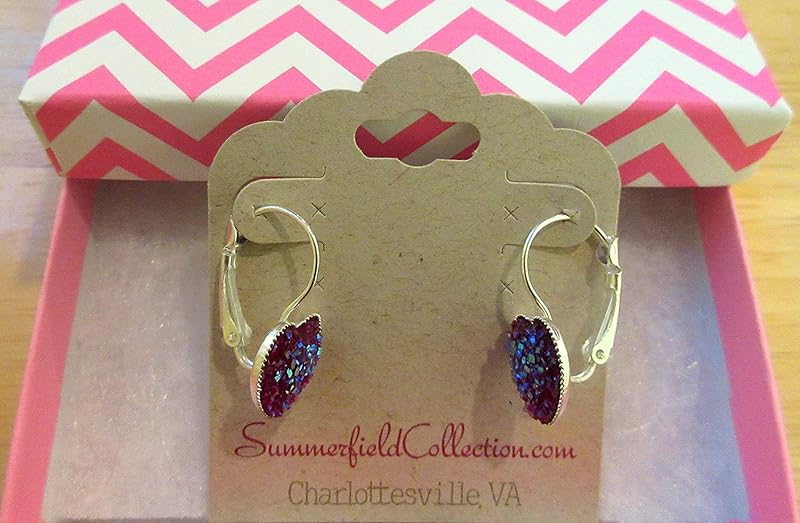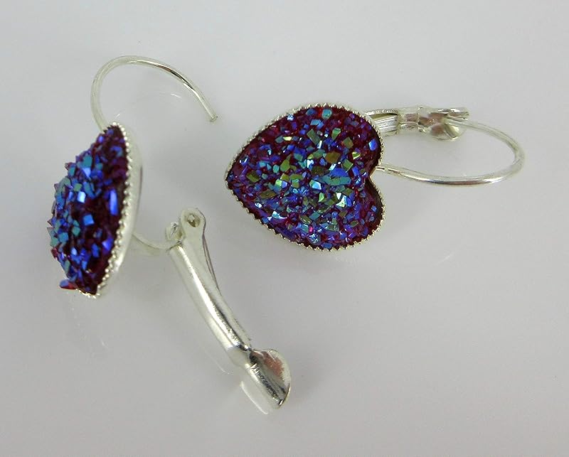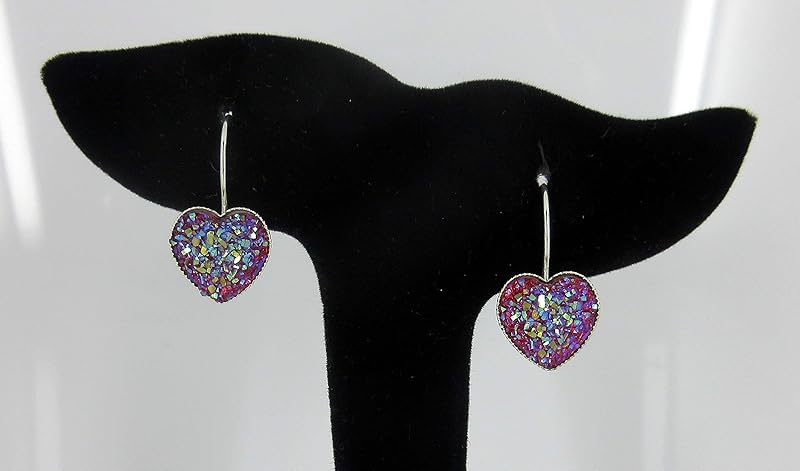 Summerfield Collection Silver-tone Raspberry Heart Faux Druzy Stone Lever-back Drop Earrings 12mm