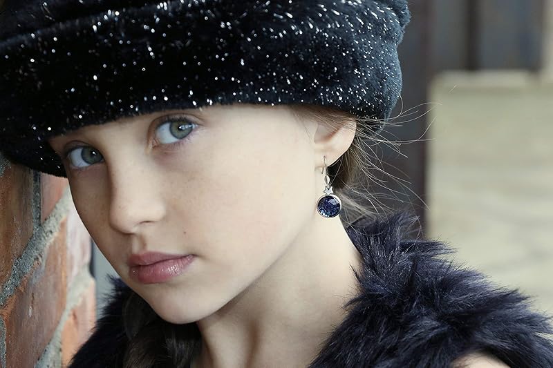 These sparkly glass earrings are hand-painted with a dark blue base color and are topped with loads of metallic blue and green hexagon flakes in varying sizes. Mini star charms complete the galaxy feel. These earrings are lightweight and fun! The glass diameter is appx. 1/2". Total earring drop is appx. 1 5/16" L. Surgical steel components. Fish hook closure. In stock and ready to ship out. Comes in a gift box for easy gift-giving. They're so unique though, you might be tempted to keep them for yourself!
