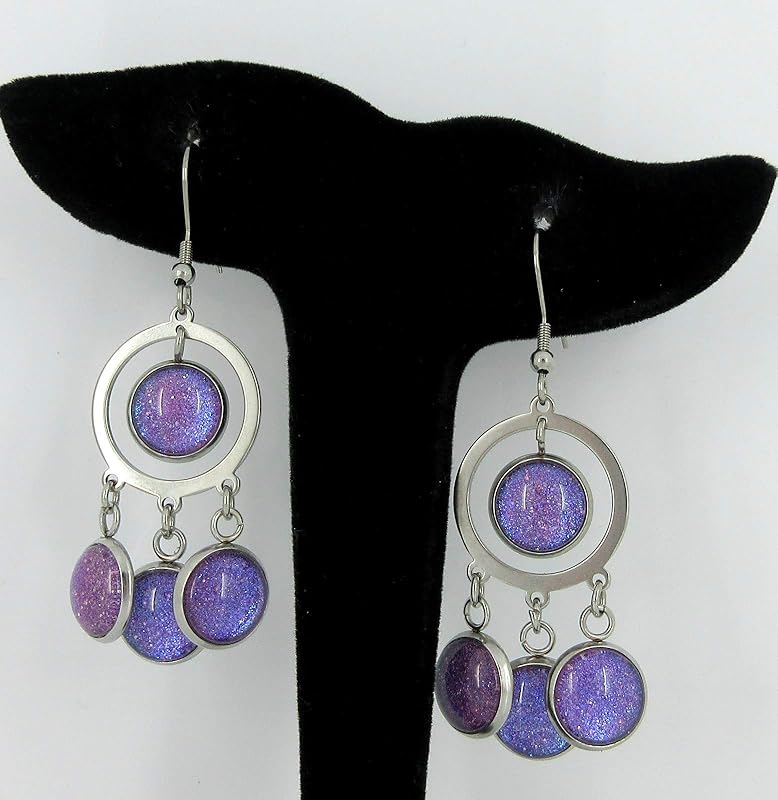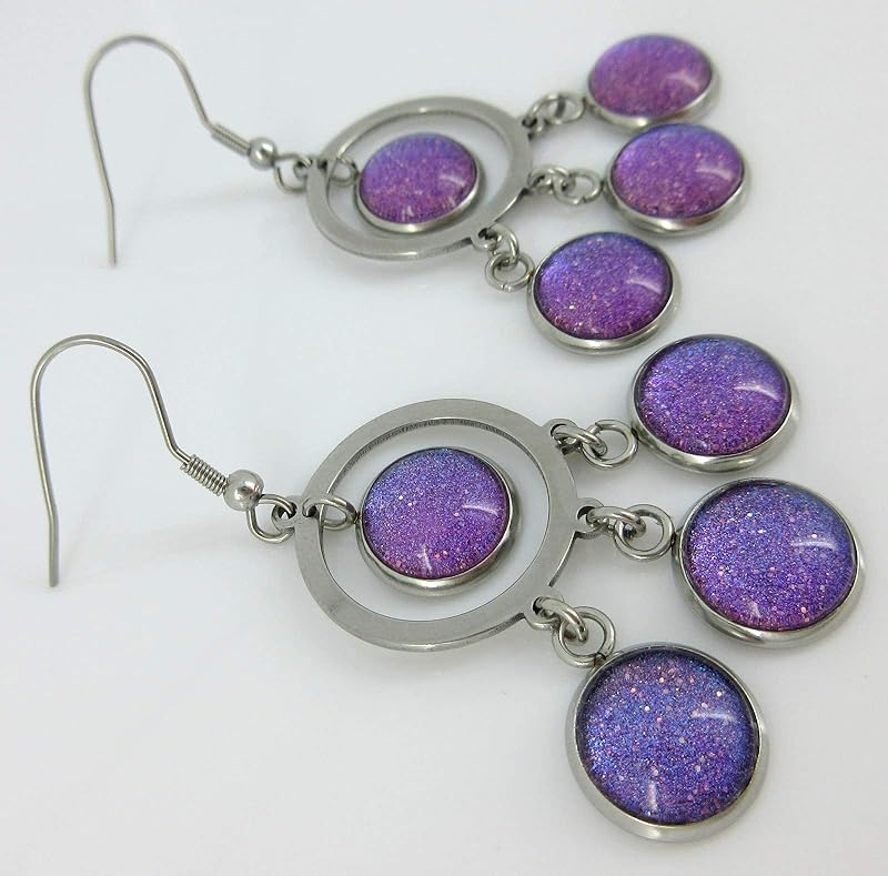 Summerfield Collection Stainless Steel Colorshifting Glitter Glass Chandelier Dangle Earrings Handpainted (Purple)