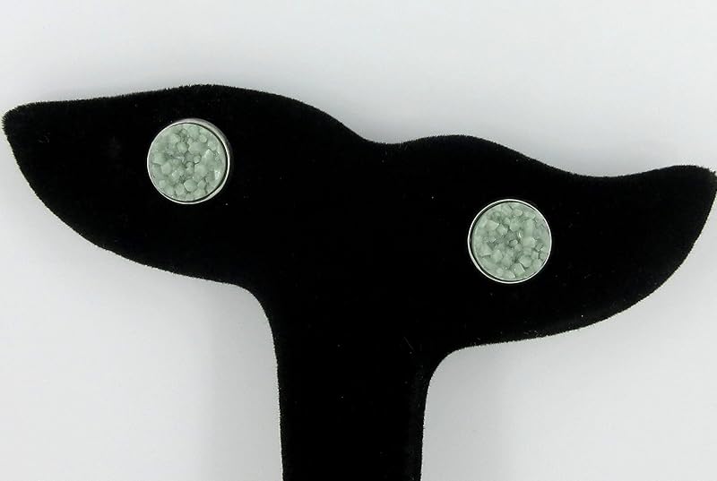 Summerfield Collection Stainless Steel Matte Faux Druzy Stone Stud Earrings 10mm (Light Sage)