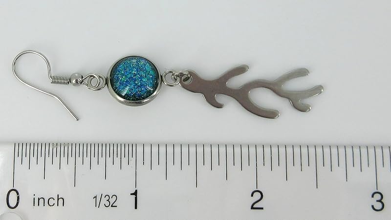 These fun earrings feature hand-painted glass pieces topped with lots of coordinating glitter flakes. Attached are fun fish and coral charms. Appx. drop of longest side is 2.75". Hypoallergenic for sensitive ears. In stock and ready to ship out. Comes in a gift box for easy gift-giving. Nickel, lead and cadmium safe.