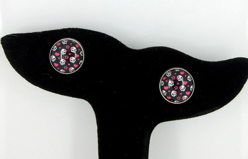 Summerfield Collection Stainless Steel Neon Pink Black White Skull Print Glass Stud Earrings 12mm