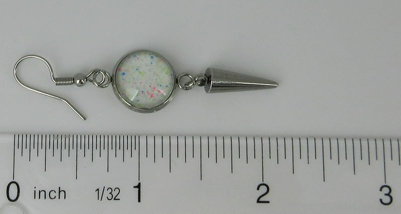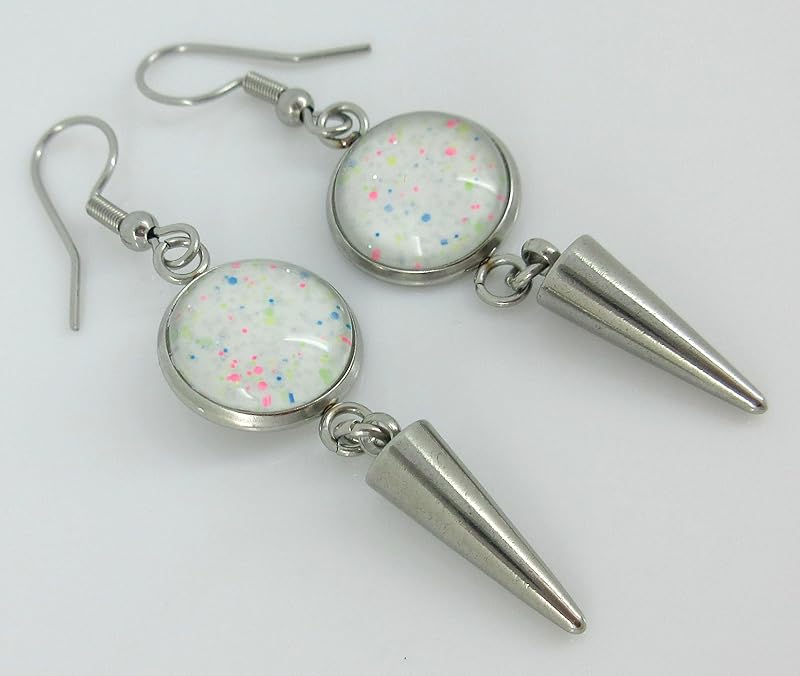 Summerfield Collection Stainless Steel White and Neon Confetti Glitter Glass Charm Dangle Earrings Handpainted Glow in the Dark